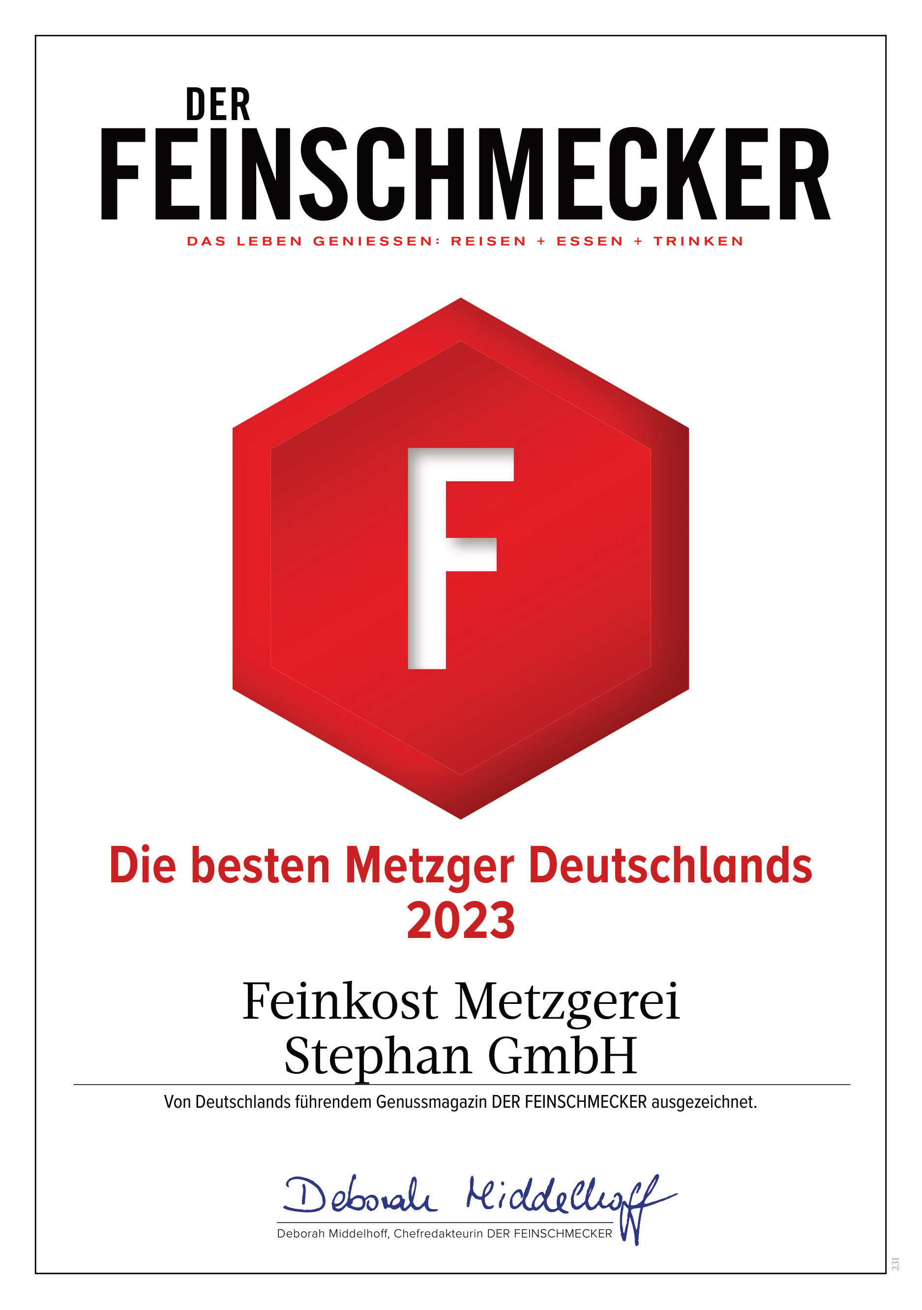 Unsere Metzgerei gehört zum vierten mal in Folge zu den 500 besten Betrieben in Deutschland